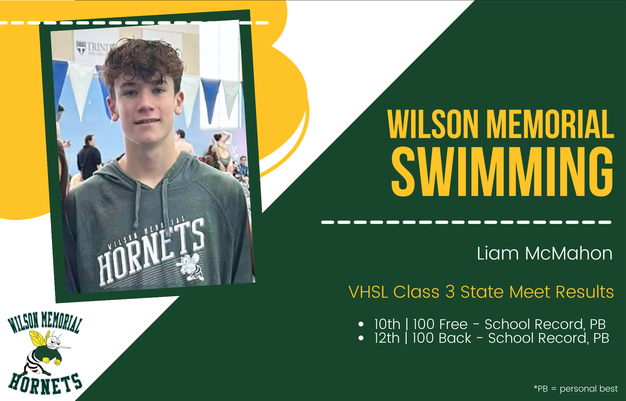 Wilson Memorial High School was represented by Liam McMahon at the VHSL Class 3 State meet. Liam school records in both of his events and also had personal best times.