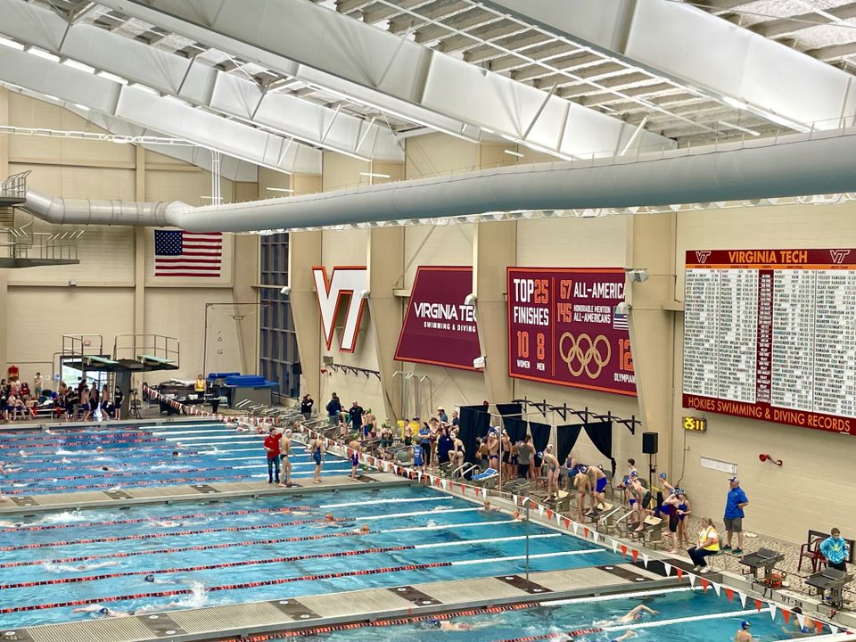 Our swimmers did NOT disappoint! They have been training hard in the water (parents, we know how much time you are spending on deck and driving as well!), and the time and hard work paid off. Lots of encouragement between the Harrisonburg and Roanoke sites and even more fun on deck!