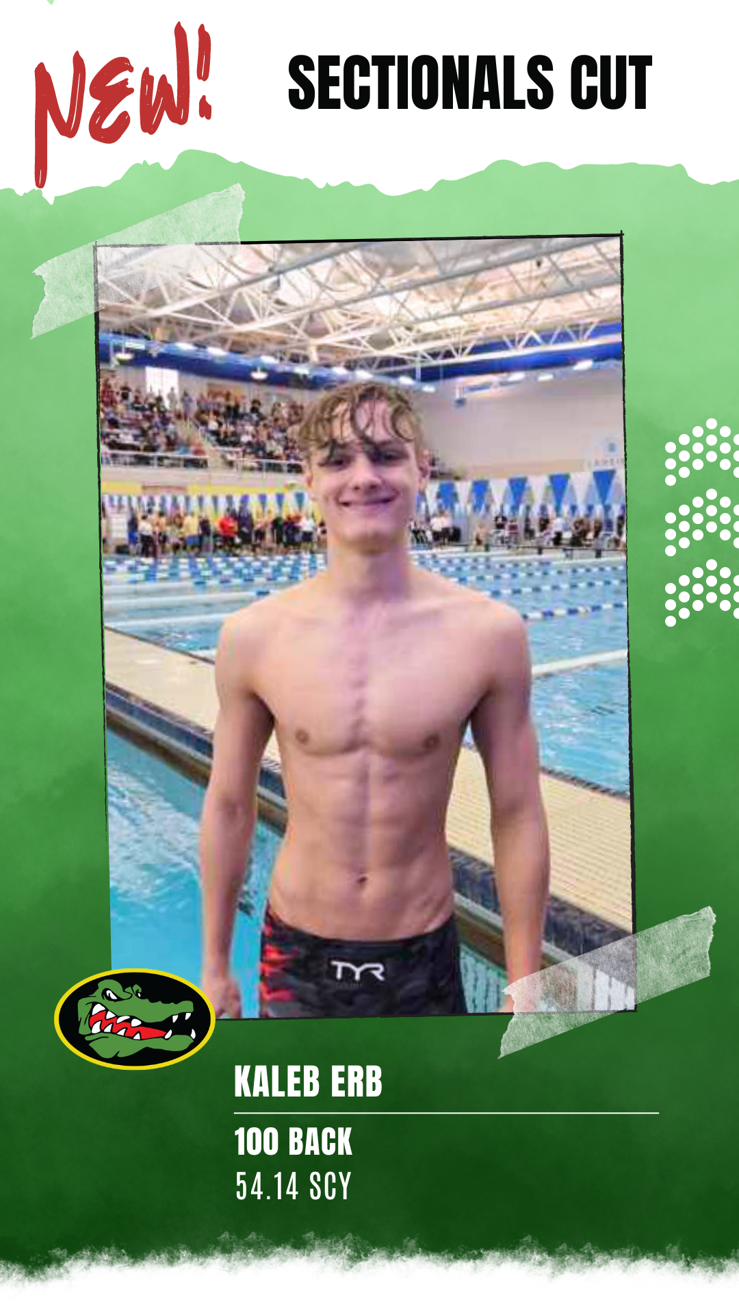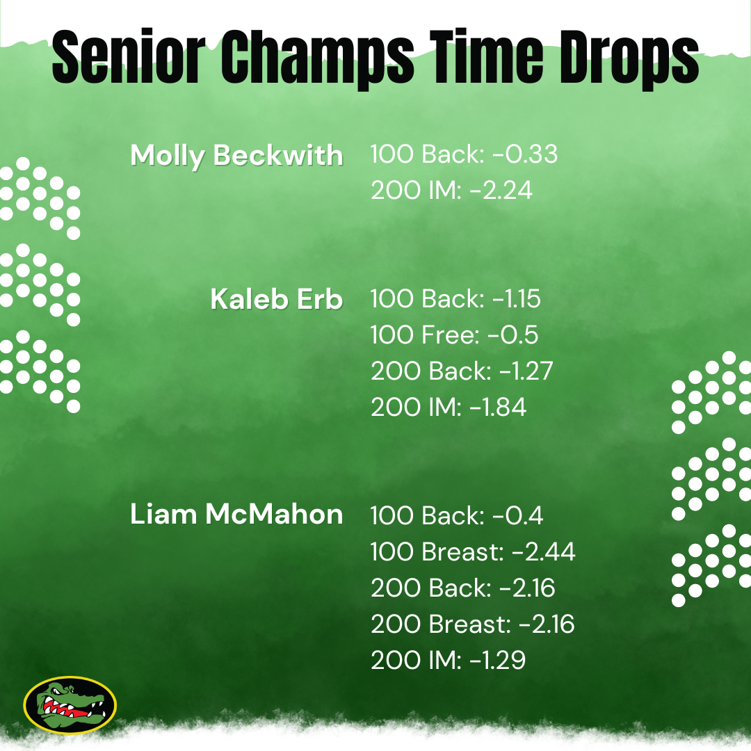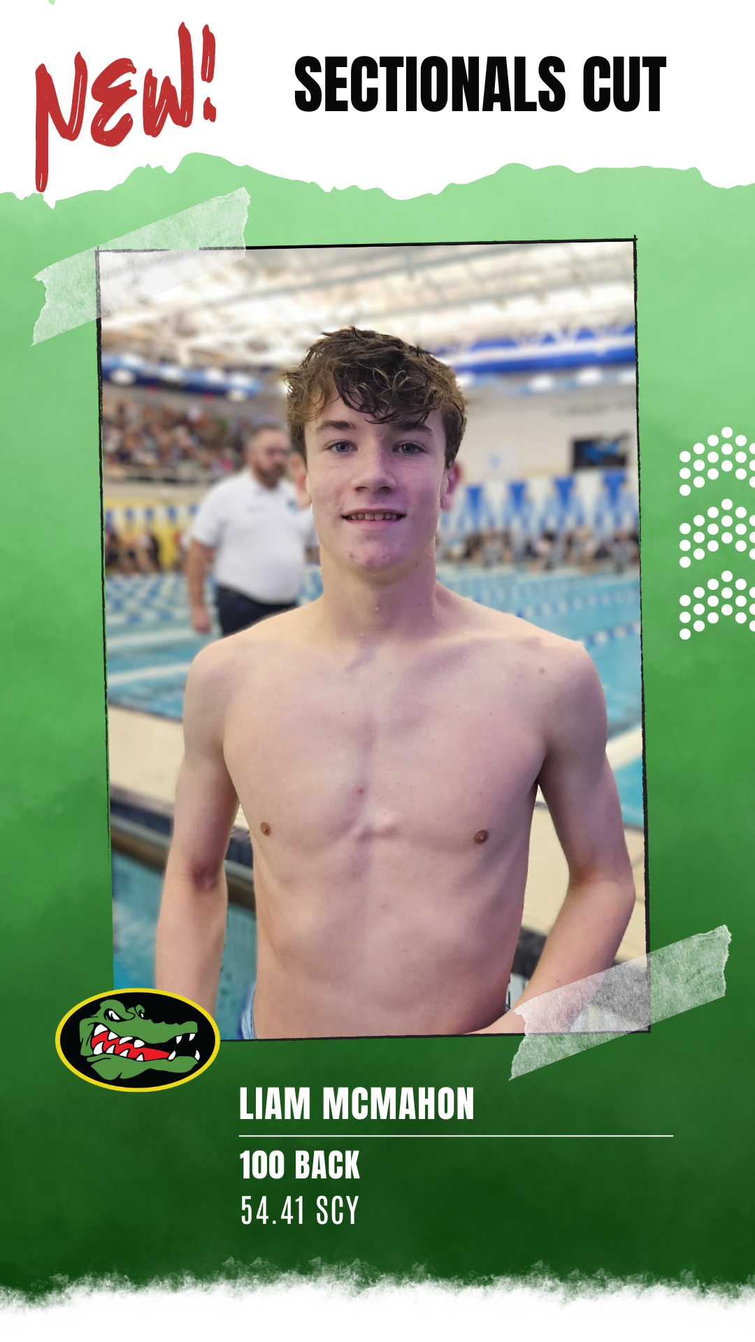 Liam McMahon also achieved two new qualifiying cuts with his swims: a sectionals cut in the 100 Back and a new Senior Champs cut in the 200 IM. Kaleb Erb achieved a sectionals cut (also a AA motivational cut) in the 100 Back as well as a new Senior Champs cut in the 200 Freestyle.