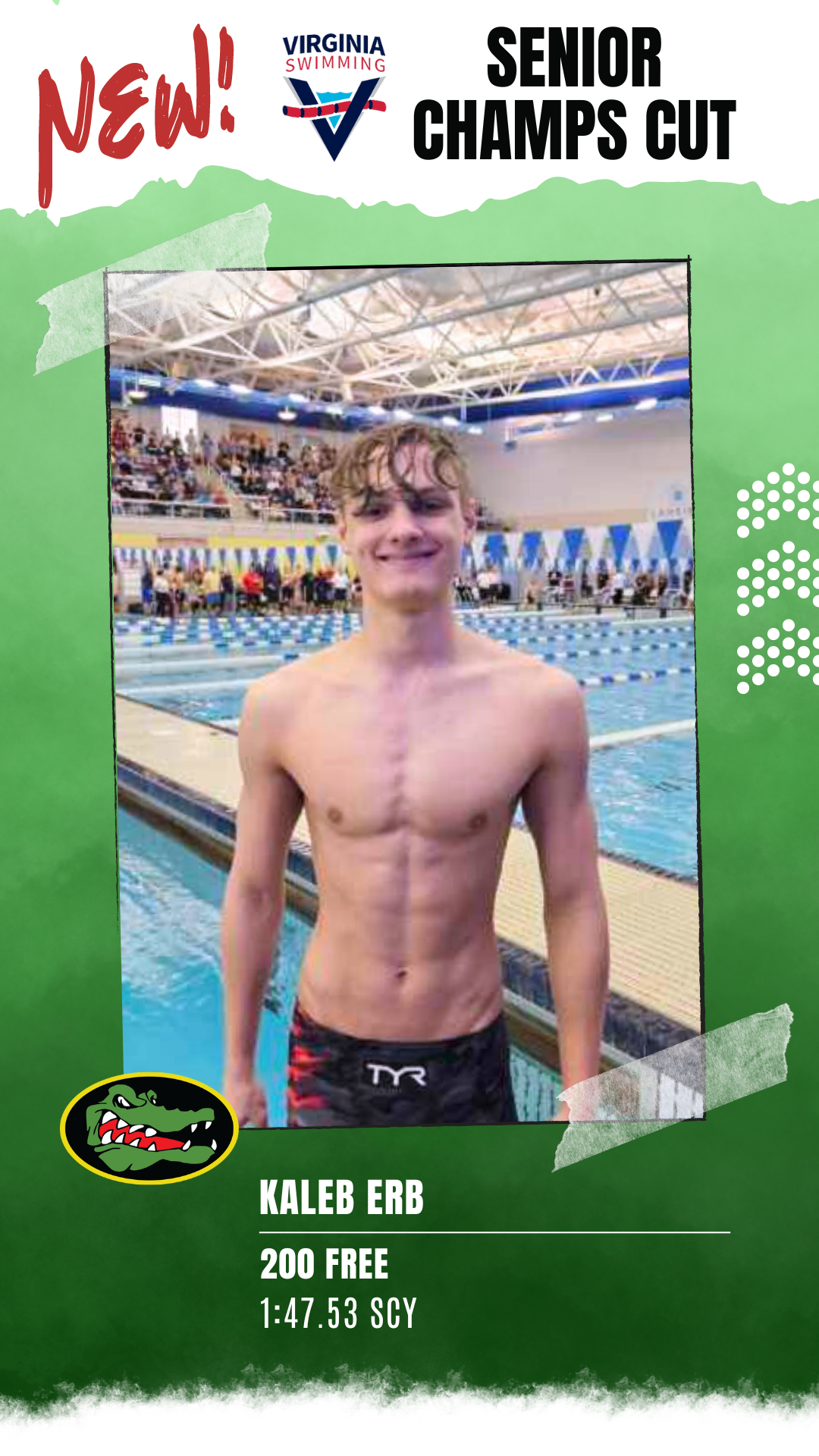 Three of our 15/older swimmers competed at the 2024 Virginia Swimming Short Course Senior Championship meet held in Richmond, VA this past week. In order to earn a spot to compete at Champs, these swimmers each earned qualifying times from the following time standards. Congratulations to Molly Beckwith, Kaleb Erb, and Liam McMahon on their hard work this season in achieving these cuts!