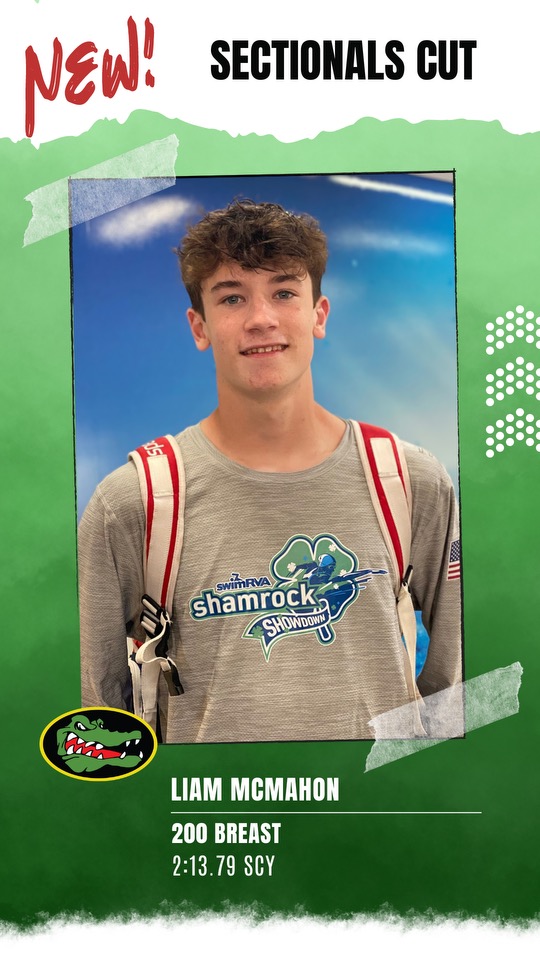 Congratulations to Liam McMahon on earning a Sectionals cut in the 200 Breaststroke.