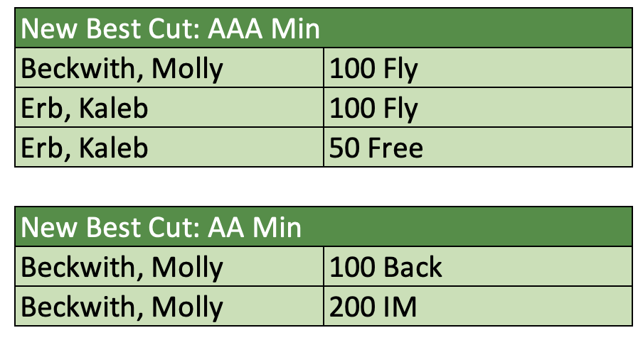 In addition to their time drops, Molly and Kaleb both achieved the following USA Swimming motivational cuts.
