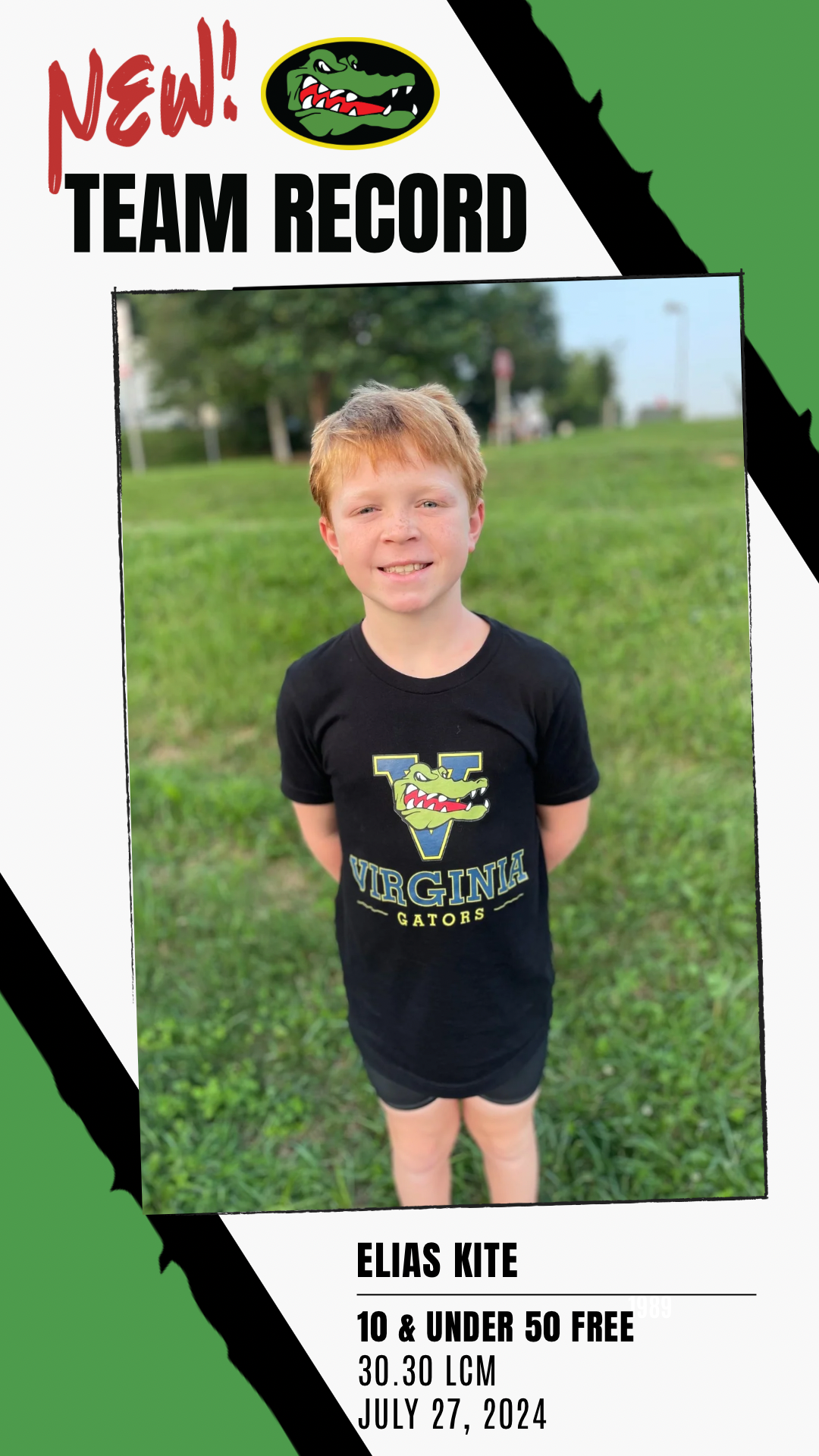 One of our swimmers, Elias Kite, swam a 30.30 in his 50M Freestyle, securing both a 1st place win and the Virginia Gator's record by .03 - every bit counts! dropping
