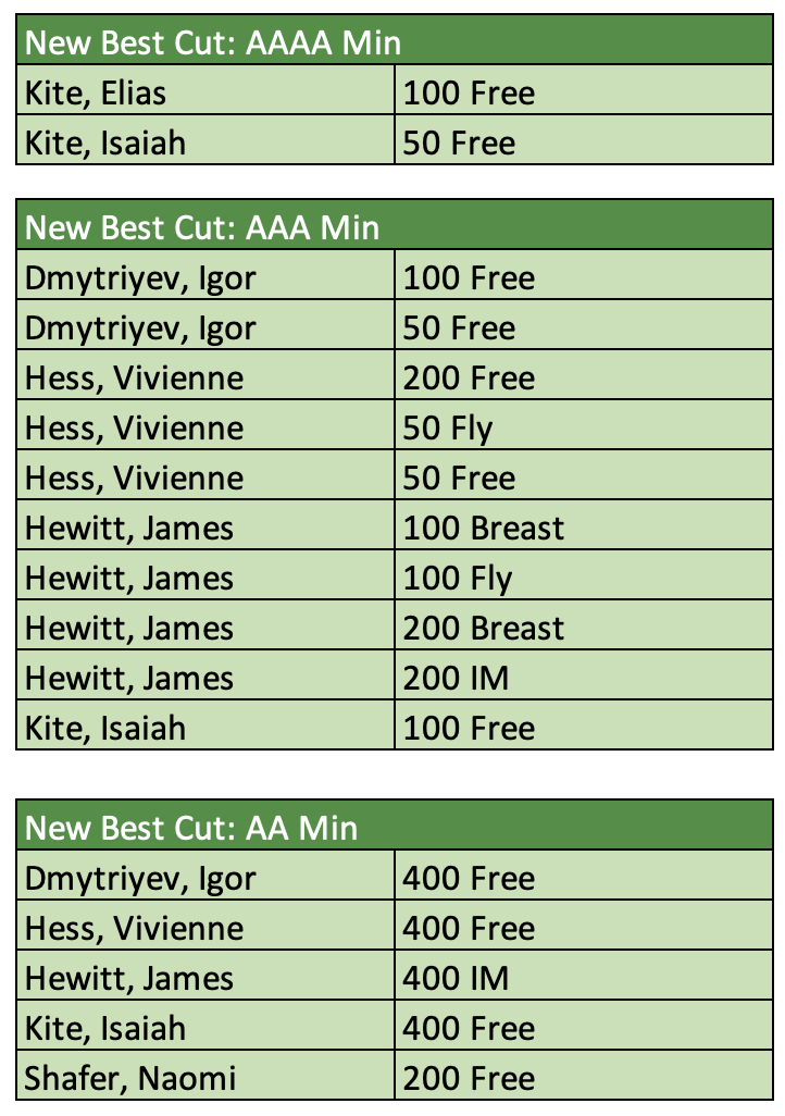 There were additionally 17 motivational cuts achieved and a new Virigina Gator record set! Those cuts and records are called out below.