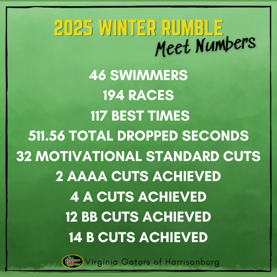 From January 18-19, forty-six of our swimmers traveled (despite snowy weather) to Charlottesville for the 2025 Cavalier Winter Rumble.