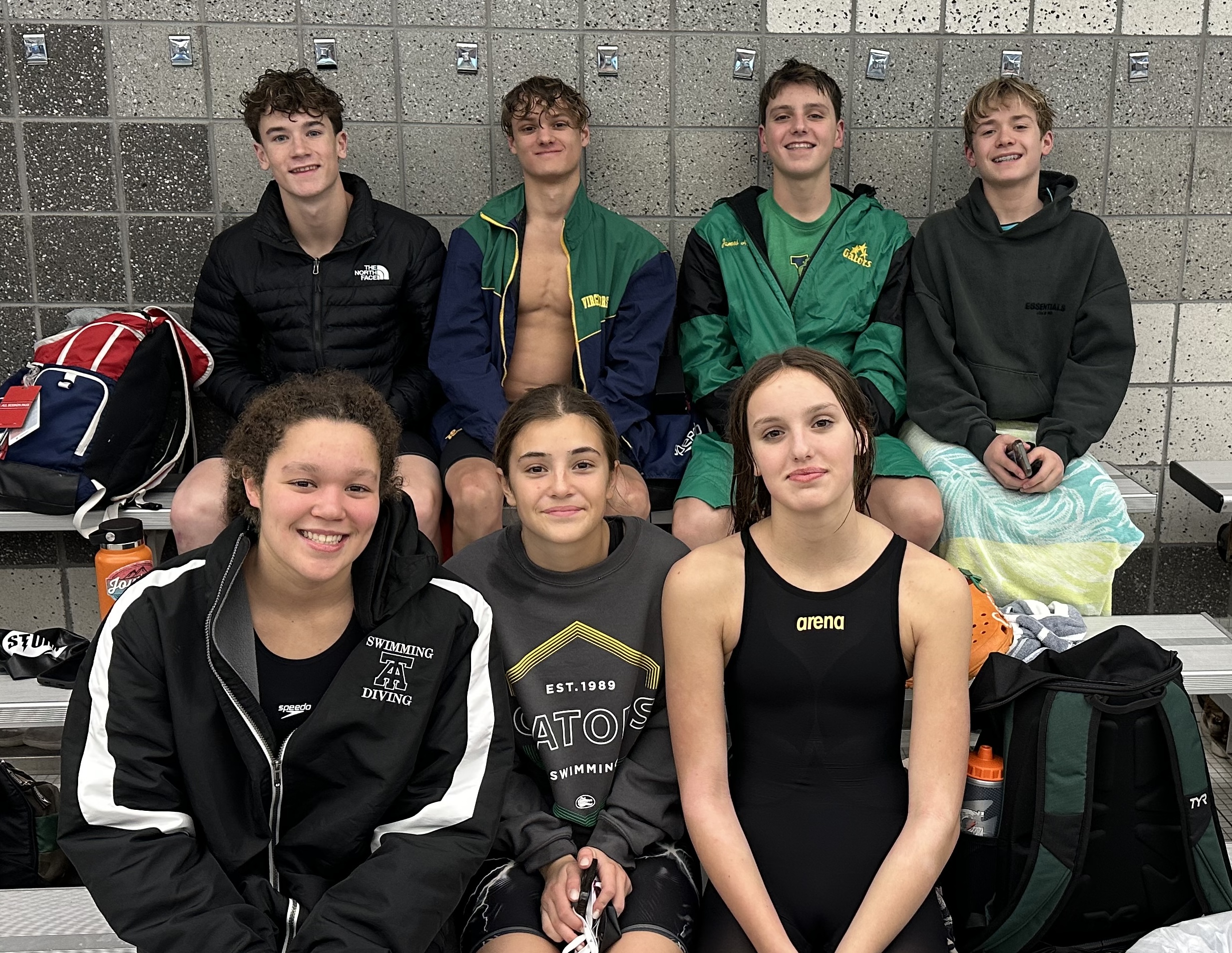 Swimmers attending: Lily Anne Anderson, Gage Becker, Molly Beckwith, Tommy Bill, Rachael Bing, Elijah Cole, Wyatt Cole, Igor Dmytriyev, Fedor Dobrynin, Vasilii Dobrynin, Yarek Dobrynin, Kallie Eaton, Kaleb Erb, Elsie Glanzer, Lola Glanzer, Madelyn Gray, Eliza Hewitt, James Hewitt, Alison Hook, Elias Kite, Isaiah Kite, Bryson Long, Caelee Long, Abby Luikart, Liam McMahon, Emma Nylander, Jake Nylander, Sophia Papa, Lexi Pullen, Will Richardson, Brandon Smith, Adrianna Suttell, Kaimbrie Zook, and Zander Zook.