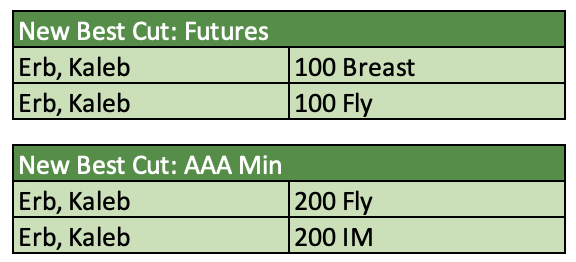Kaleb also earned two Futures cuts in the 100 Fly and the 100 Breast.Congratulations again to these four on their hard work over this past season!