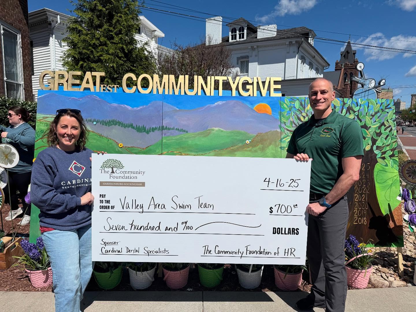 Thanks so much to Coach Scot for collecting our check - and an extra big thanks to Cardinal Dental Specialists for their sponsorships of the Power Hour and donor prize money. We appreciate all the local businesses that helped The Community Foundation of Harrisonburg/Rockingham County put on the Great Community Give.