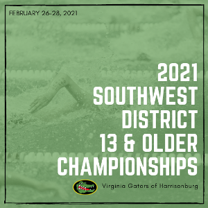 2021 Southwest District 13 & Older Championship From February 26-28, twenty-seven of our swimmers traveled to Virginia Tech for the 13 & Older District Championships. It was a busy weekend full of great accomplishments we're sharing below! 13-14 Swimmers: Tommy Bill (13), Rachel Bing (13), Rebecca Couric (13), Davis Hinkle (13), Madison Keller (13), Albert Krasheninnikov (13), Carly Reedy (13), Isabelle Thompson (13), Molly Beckwith (14) Lydia Couric (14) Tessa Gorby (14) 15 & Older Swimmers: Jackson Curry (15), Zoe Deeble (15), Mia Flory (15), Noah Gabriele (15), Amelia Gorby...