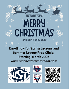 WST Vision: The Winchester Swim Team seeks to always operate in an atmosphere where all swimmers feel welcomed, safe, positive, encouraged, and supported in achieving their goals. In addition, the WST seeks to develop a team spirit among family members, as well as swimmers, through continuing to educate them in the sport of swimming and always encouraging families to volunteer in support of their swimmers, their team, and their sport.