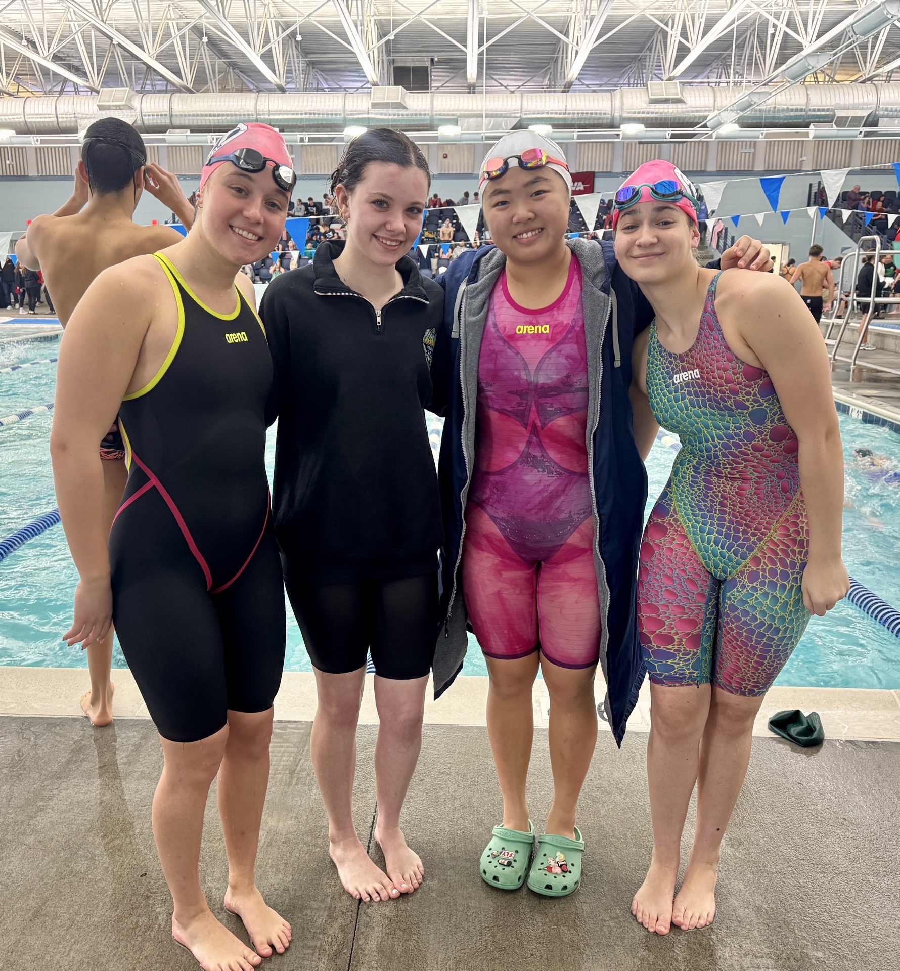 Our team is under contract with Arena. All competition suits should be of the Arena brand. During practice swimmers can wear any suit or cap.