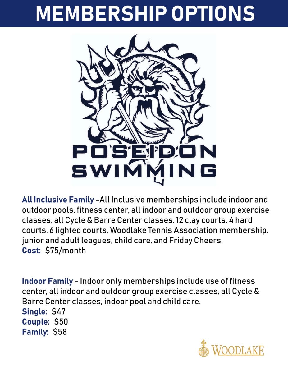 Parking: Poseidon parents are welcome to drop their swimmers off directly in front of the building. However, no Poseidon swimmers or parents may park in the lower lot. When you drive into Woodlake, the buidling will be on your left. Please continue down past the main entrance to the pool and park in the lot to the right. The lower lot is reserved for Woodlake's residents/members ONLY.