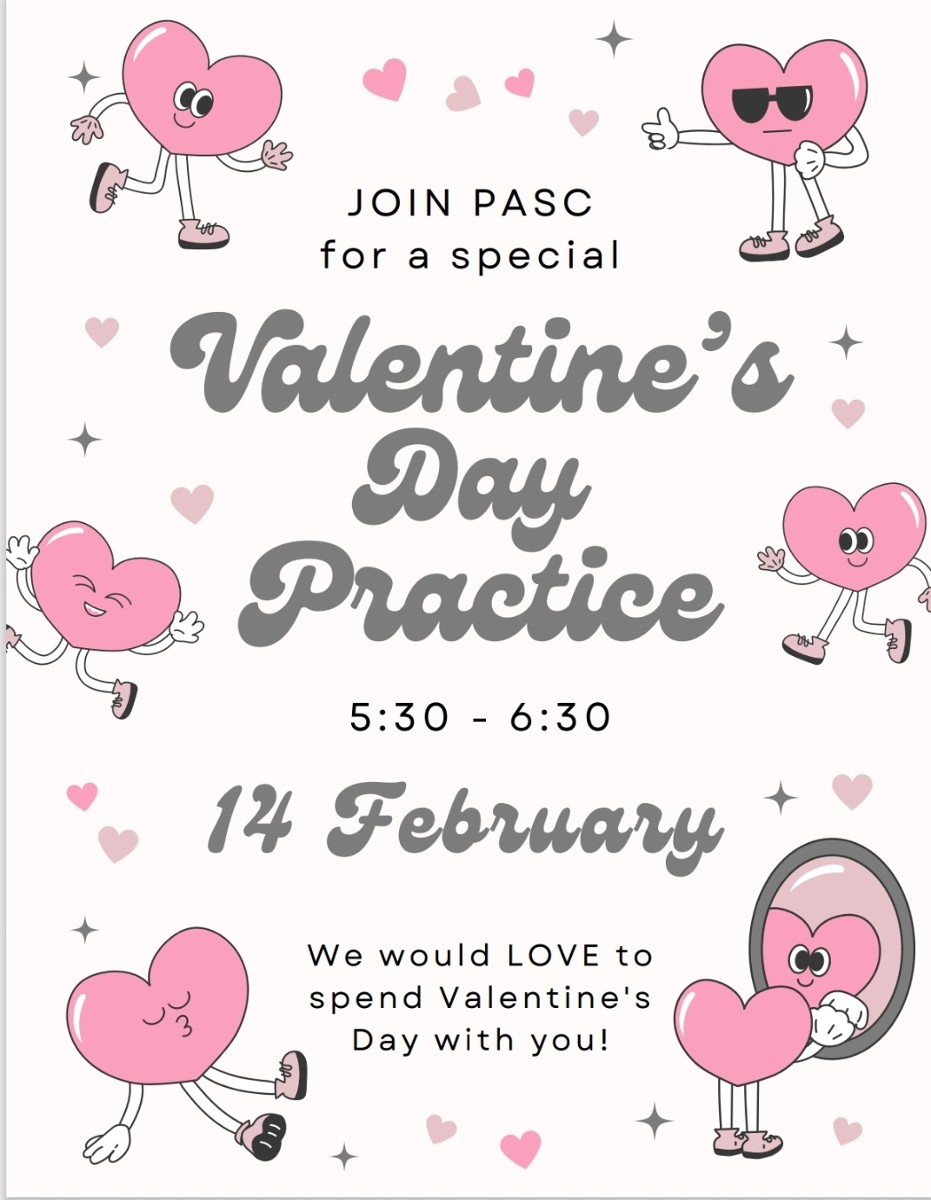 Join us for a special Valentine's Day Practice on February 14th from 5:30-6:30 pm.