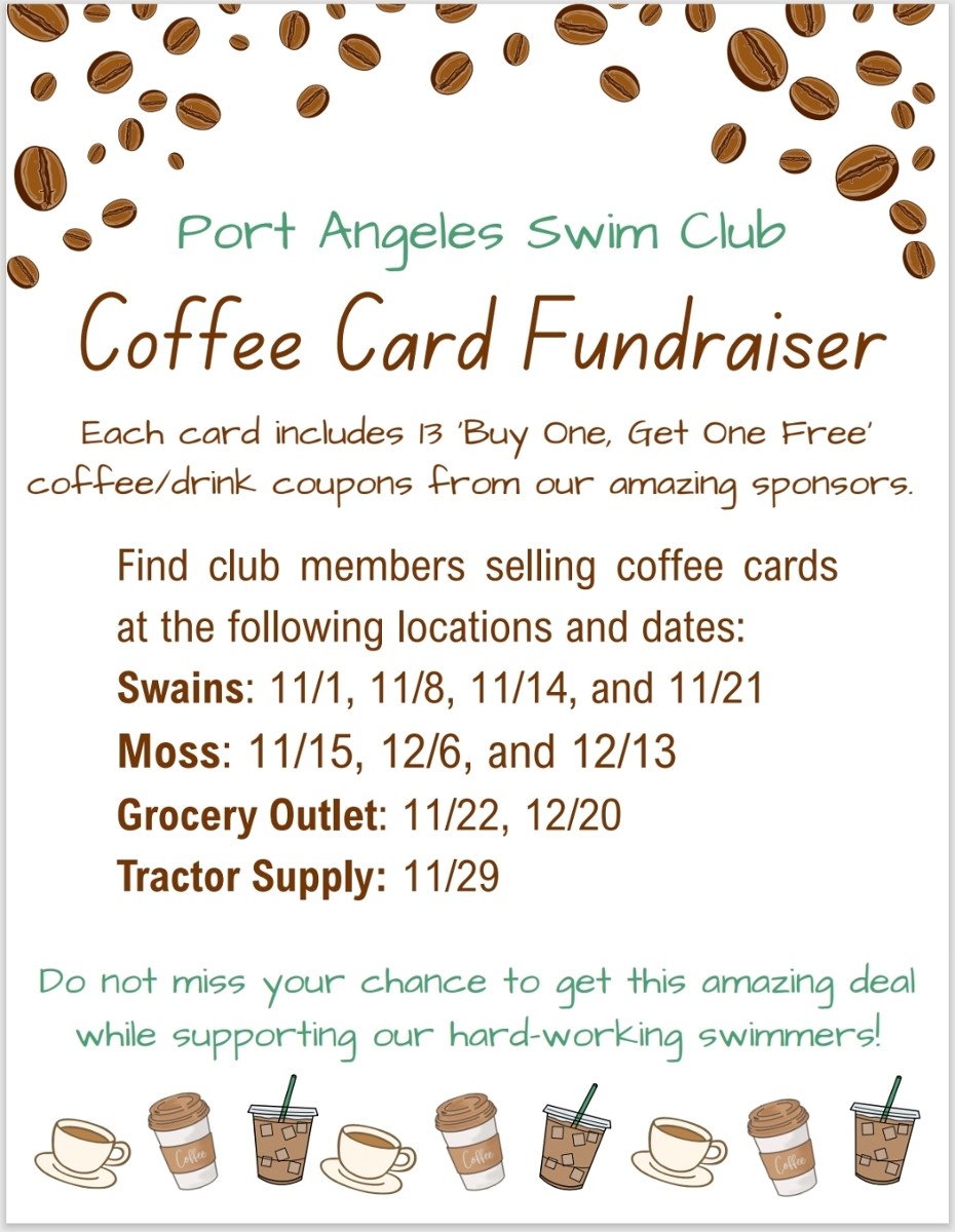 Catch the Swimmers around town every Saturday—and some Fridays too!—selling coffee cards from 10 AM to 4 PM at these great locations.