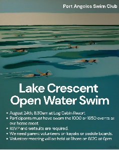 Our annual party will be at the Lake Crescent Lodge by the dock. We will gather at 11:00 am. Bring a potluck dish and/or beverage to share. Pizza will be provided. Relax and enjoy a day in the sun our amazing swim family!