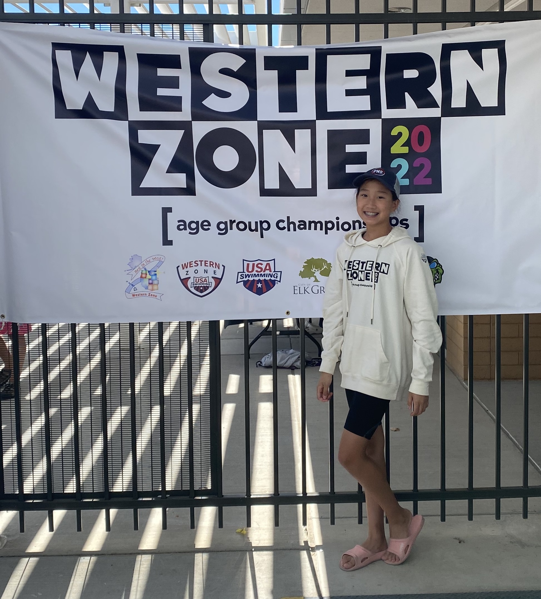 Claire Gao was Wave’s sole swimmer at this meet, which is the highest level possible for 10&Unders. There are four zones in US Swimming. This year’s Western Age Group Zones was in Elk Grove, California. The swimmers at this level all compete for PNS rather than their individual teams. Claire had a fantastic meet, especially with it starting just four days after PNS Age Group Champs ended! On day 1, she had a best time in the 200 Free less than one week after her previous best time! Then she finaled in the 100 Free on day 2 with a time right on her best. Finally, on day 4, she became just the second 10&Under in Wave history to break the 31:00 barrier in the 50m Free, going 30.86!