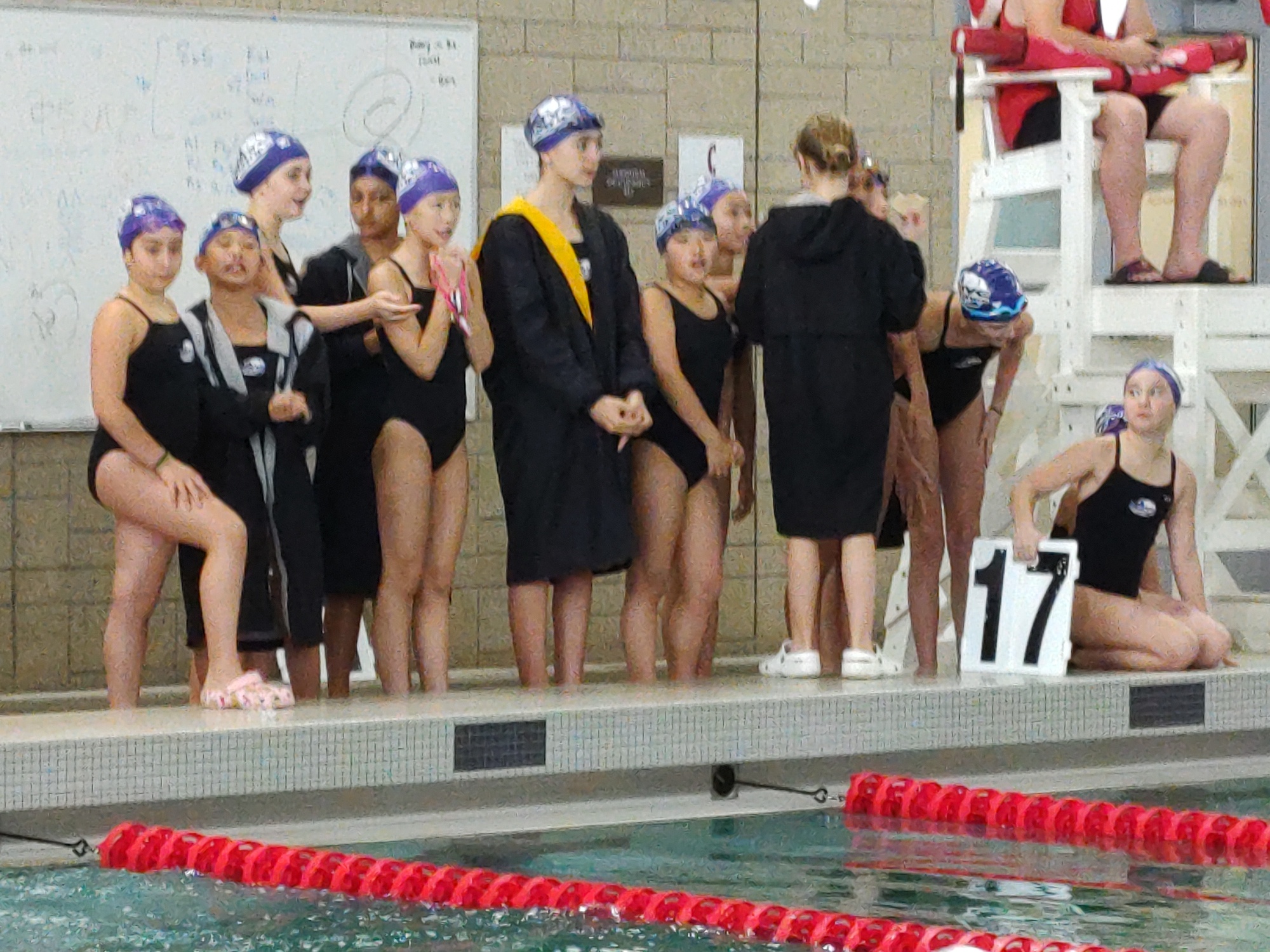 Two swimmers deserve special recognition: Rhea Dawani and Anu Bathe. Their 500 Free heat was cut due to time constraints on Saturday night, but they elected to swim it as the first race on Sunday morning along with their other three events. Rhea then swam her 200 Free only six heats later! Way to be tough, Rhea and Anu! A huge shout out to all their teammates who packed the deck to cheer them on!