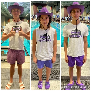 July Jamboree Meet Recap What a wild and crazy weekend down in Tacoma as many of our athletes finished their season with some outstanding swims! For many, it was their first chance to swim relays in a long time, or ever! Many many thanks to all the parents and swimmers who volunteered as officials and timers. A special shout out to Kaler Duryee, who ran all the staging for the 10&Under sessions! The host team could not have run the meet without Wave’s outstanding sportsmanship! Purple Most of Purple group...