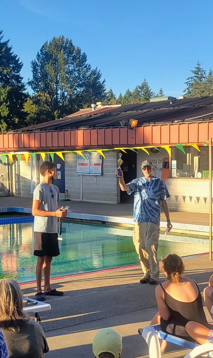 Amazing and creative awards were presented. Some that stood out were the Aquaman big hair award, the loudest cheering award, the biggest cheerleader award, and many others. Saffron was given a signed kickboard by the team, and a trophy among other wonderful acknowledgments. Jamie got a trophy and a medal for his many records broken.