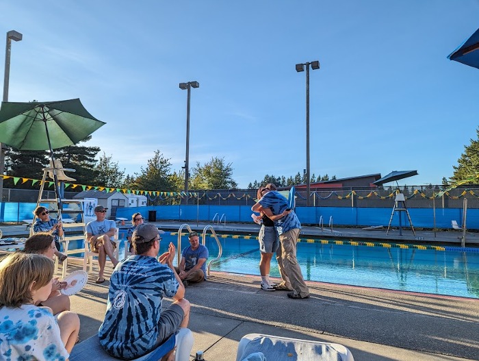 The barbecue is also an opportunity for the hard working board of volunteer parents to share news, needs, and recognize the teams' successes. Each board member spoke a bit about their experience as a Seals board member. Below is a summary of each member's message: