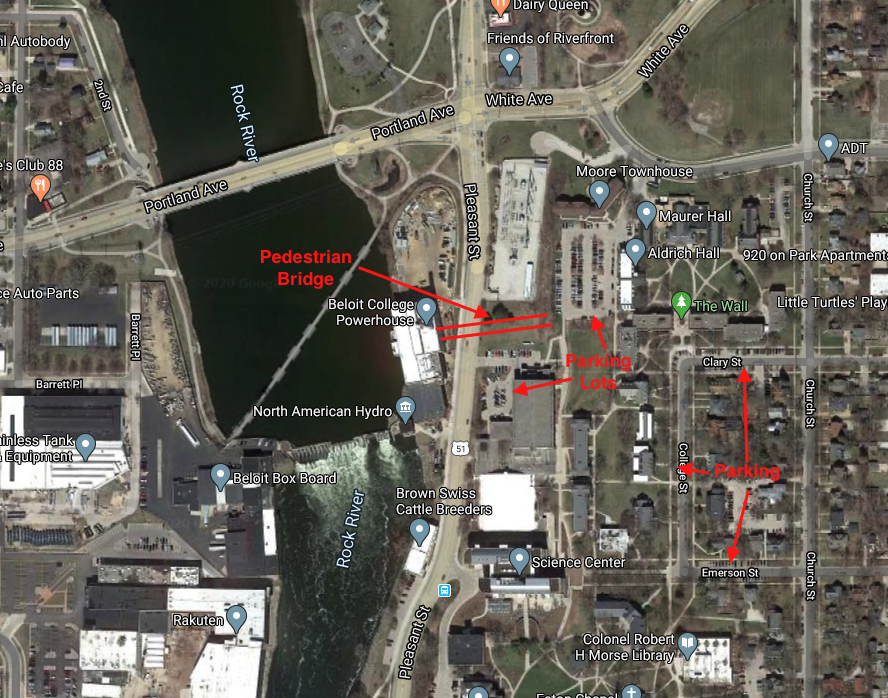 Beloit College completed the Powerhouse Pool in 2020. The address is 850 Pleasant St, Beloit, WI 53511. These are instructions for how to get to the pool: