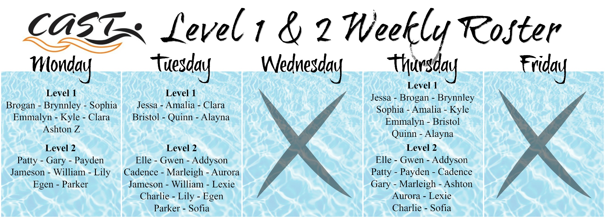The agreed weekly dates for the Winter 2018 CAST swim season are shown!!