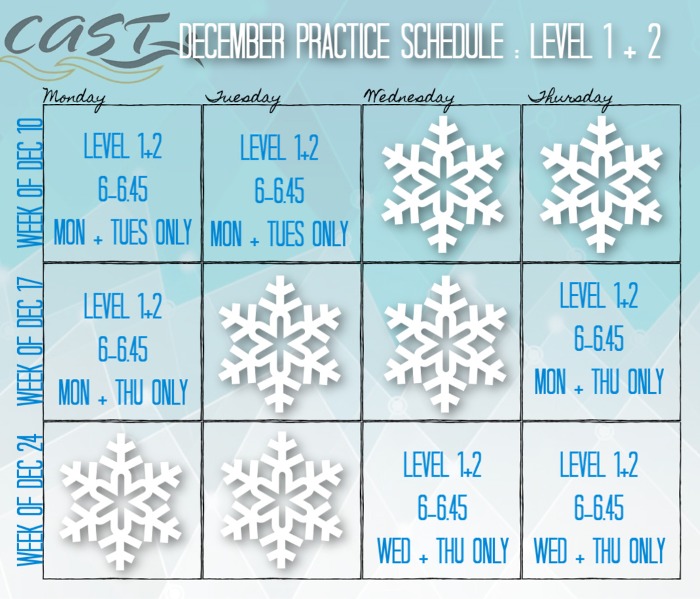 Week of December 10th: practice only on MONDAY and TUESDAY