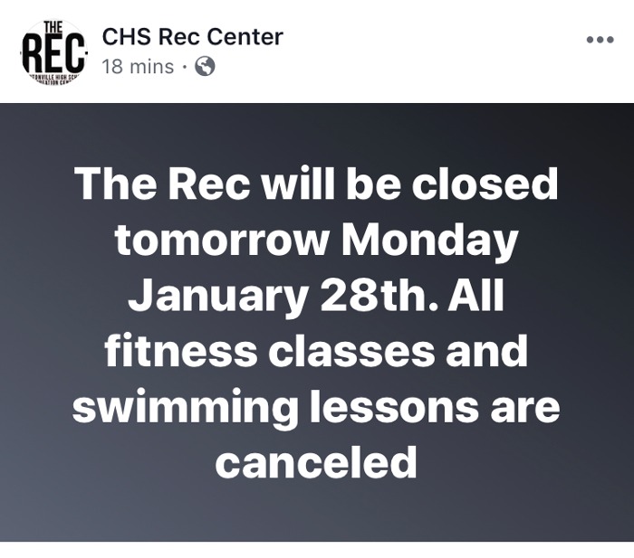 Practice Cancelled 1-28-19