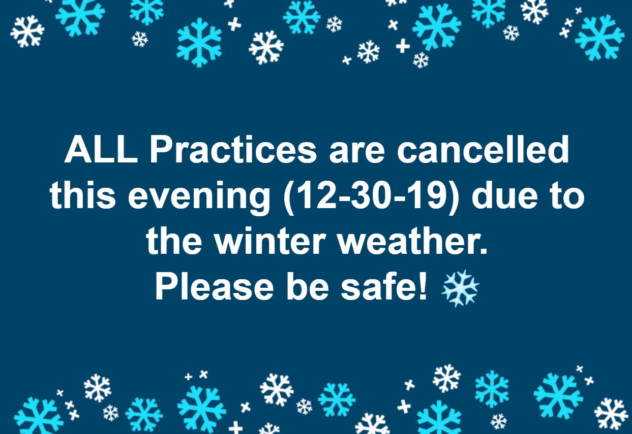 Please note practices for this evening (12-30-19) have been cancelled due to winter weather. Have a great evening and BE SAFE!