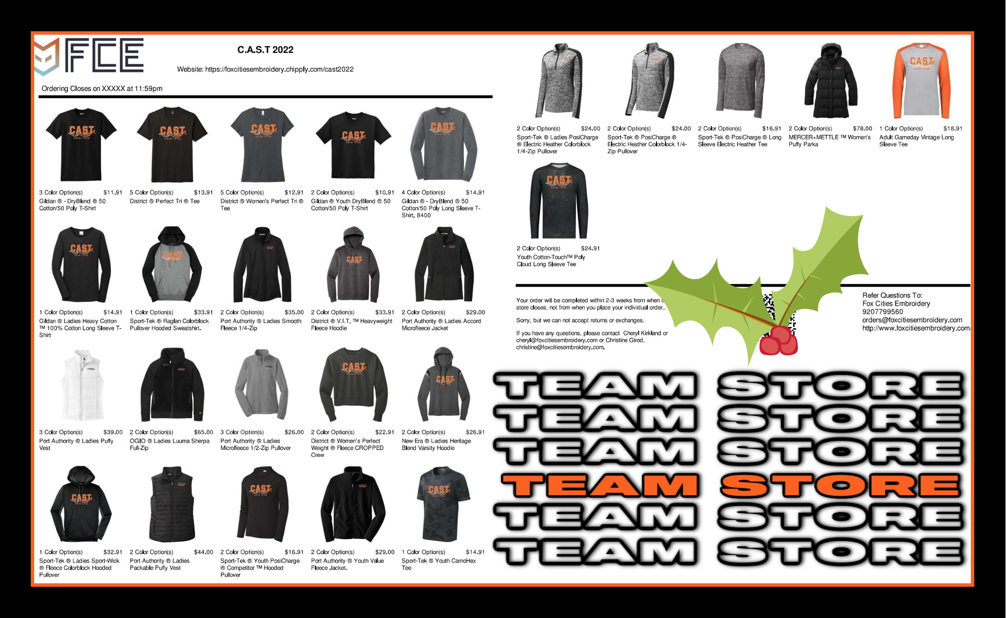 Upon request, the CAST team store has been re-opened for the holiday season!