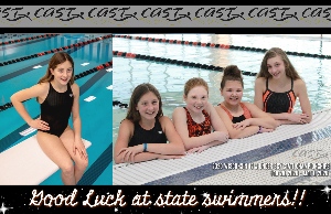 Special congrats to Addison Lundt, Lily Owen, Cadence Rose, and Calleigh Zoellick. These ladies - making up CAST’s state team - will be part of a parade escort out of town on their way to the 12-Under SCY State Championships on Feb 28th! Please make arrangements to celebrate with them if at all possible!! The Clintonville Police department has requested that, for everyone to have room to get ready, and to keep consistent with previous parades, we meet at the Middle school parking lot at roughly 8:40am on Friday 2/28....