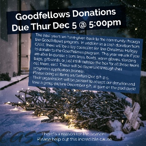Please bring all items on/before Dec 5th @ 5pm. Please visit them on Facebook (*Click Here*) if you would like to get involved further!! Their organization will be present to accept our donation and take a group picture December 5th, at 5pm on the pool deck!