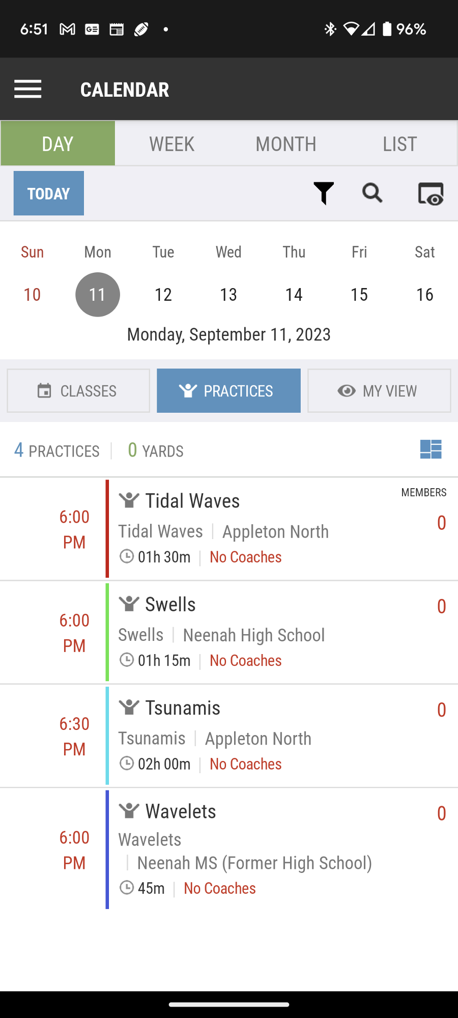 Practice schedules are mostly the same week to week. However, there are A LOT of changes in time and location, typically, on Tuesdays due to High School Home Swim Meets.