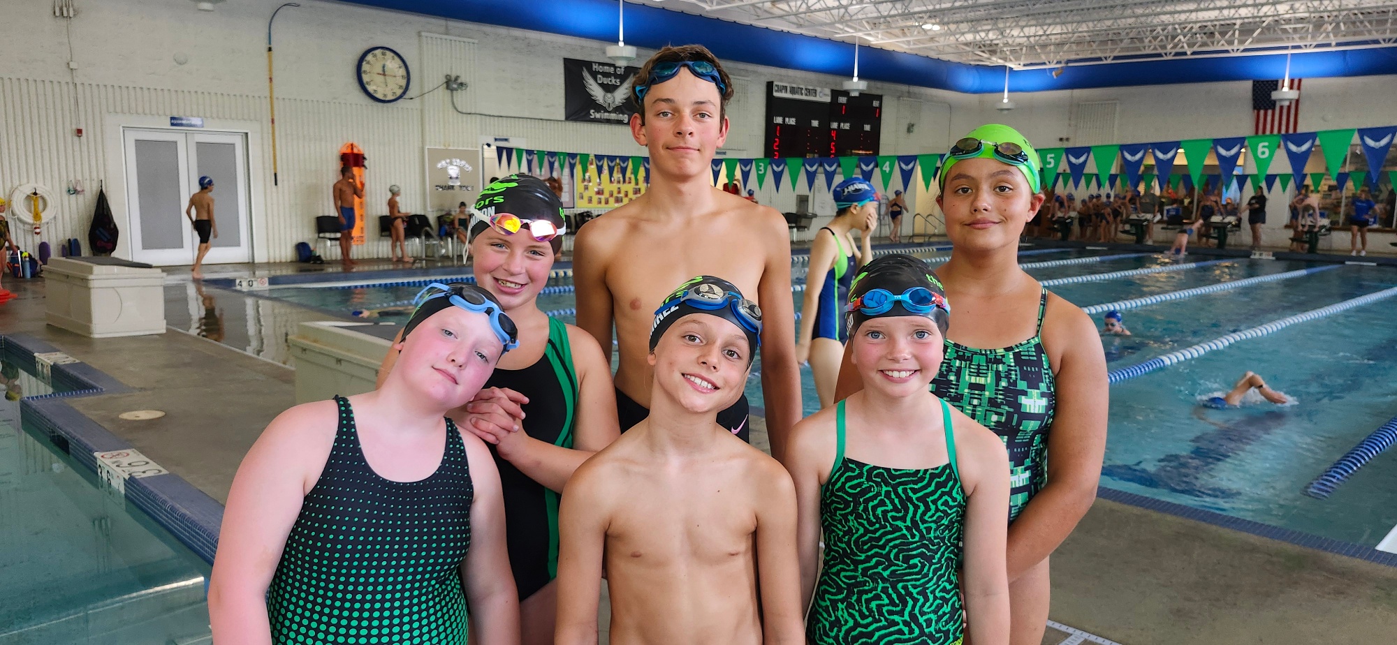 The Green County YMCA Gators wrapped up their spring/summer swim season with a hot swim meet in Lake Geneva on July 29th, 2025. This conference meet included the J-Hawks Aquatic Club, New Berlin Swim Club, Southeastern Aquatics and the host team Lake Geneva YMCA Ducks Swim Team. This meet was held as a “Mixed, Open” meet meaning women and men compete in the same events and events are open to all ages. The Green County YMCA Gators were represented by six swimmers earning a combined score of 58.