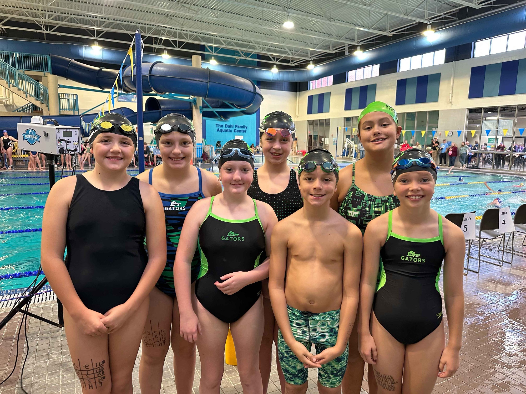 The top point earners for the Gators were Olivia Hustad (9) with 52 points, Kinsley Huffman (10) with 47 points and Everett Ramirez (9) with 37 points. All three of them swam a YMCA State Qualifying time in an individual event. Olivia Hustad (9) took 2nd place in the Girls 10&U 50 Back with a state qualifying time of (39.00Y). She also took 1st place in the Girls 9-10 100 Back with a time of (1:26.38Y) and 4th place in the Girls 9-10 100 Free (1:24.12Y). Kinsley Huffman (10) earned 2nd place with her swim in the Girls 9-10 100 Yard Free with a time of (1:16Y), 3rd place in the Girls 9-10 50 Free with a state qualifying time of (33.89Y) and 5th place in the Girls 10& Under 100 IM with a time of (1:34.67Y). Everett Ramirez swam two state qualifying times taking 1st place in the Boys 9-10 100 Free (1:14.43Y) and 2nd place in the Boys 10& U 50 Back (40.34Y).