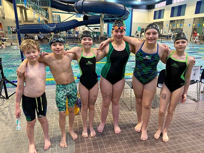 Other point earners for the Gators included Stella Rolli (12) with 29 points with third place in the Girls 11& Over 100 Fly (1:36.25Y) and sixth place in the Girls 11& Over 100 Breast (1:42.00Y). Lauren Kosmosky (12) earned 20 points with fifth place in the Girls 11 & Over 100 Breast (1:36.28Y), eight place in the Girls 11 & Over 50 Free (29.96Y) and eleventh place in the Girls 11& Over 100 Free (1:08.37Y). Sadie Deal (11) earned 17 points with sixth place in the Girls 11 & Over 200 IM (3:48.43Y) and thirteenth in the Girls 11-12 50 Breast (54.87Y). Georgia Christen (12) earned 15 points with eleventh place finishes in the Girls 11& Over 100 Back (1:47.17Y), Girls 11 & Over 200 Free (3:17.71Y), fourteenth place in the Girls 11-12 50 Fly (51.14Y). Charlotte Stuessy (11) earned 12.5 points with tenth place in the Girls 11 & Over 100 Back (1:40.90Y), thirteenth in the Girls 11-12 50 Fly (50.04Y), and fifteenth in the Girls 11-12 50 Back (47.01Y). Quintin Soddy (11) earned 11 points with a tenth place finish in the Boys 11-12 50 Breast (1:04.03Y) and thirteenth in the Boys 11-12 50 Back (55.80Y). Ara Schmidt (14) earned 9 points with a ninth place finish in the Girls 11& Over 100 Breast (1:36.02Y). Avery Mansfield (9) earned 6 points with twelfth place in the Girls 10 & Under 100 Free (1:32.05Y) and sixteenth place in the Girls 9-10 50 Back ( 45.25Y). Cullin Soddy (9) earned 2 points with a fifteenth place in the Boys 9-10 50 Free (55.44Y).