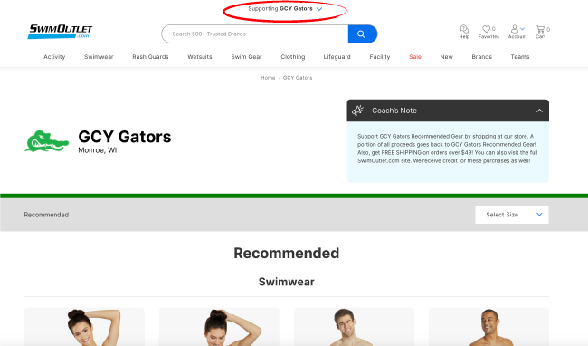 You can purchase swimming and training gear from our team store at Swimoutlet.com. When you are logged in and it shows "Supporting GCY Gators" at the top of your screen, a portion of your purchases comes back to support our Gators team. Funds from this store help purchase things like fins, meet awards and items towards our team events. While we have a section of recommended items, every item purchased on Swimoutlet.com will support our team as long as it shows you are "Supporting GCY Gators".
