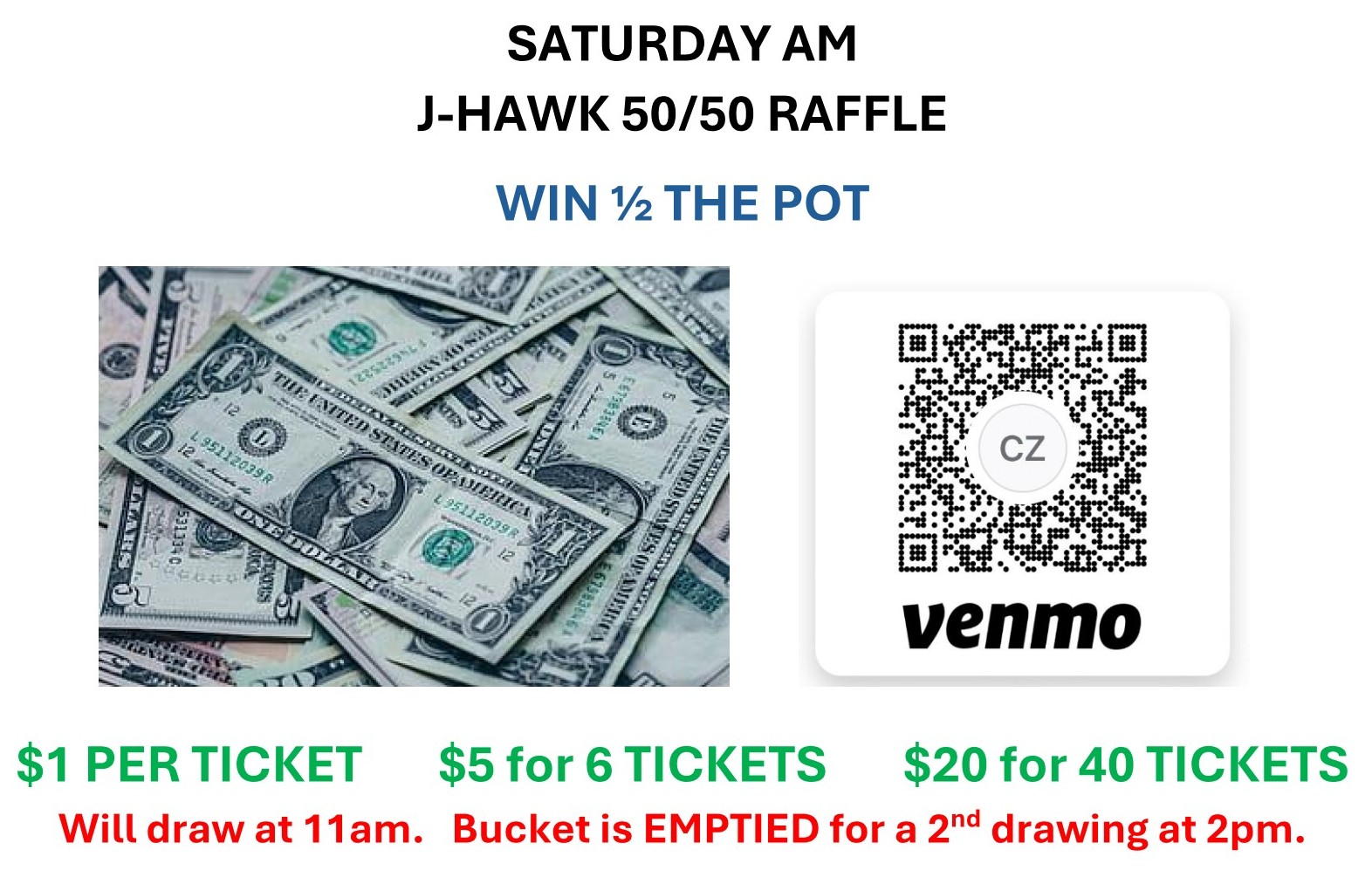 BRING SOME CASH FOR OUR 2 50/50 RAFFLES (11AM & 2PM)