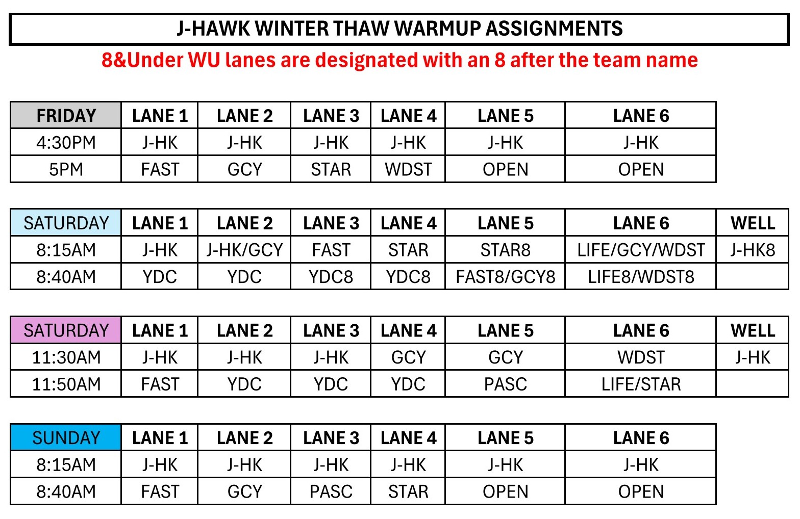Heat sheets will be available at the pool, after warmups (all check-in events).
