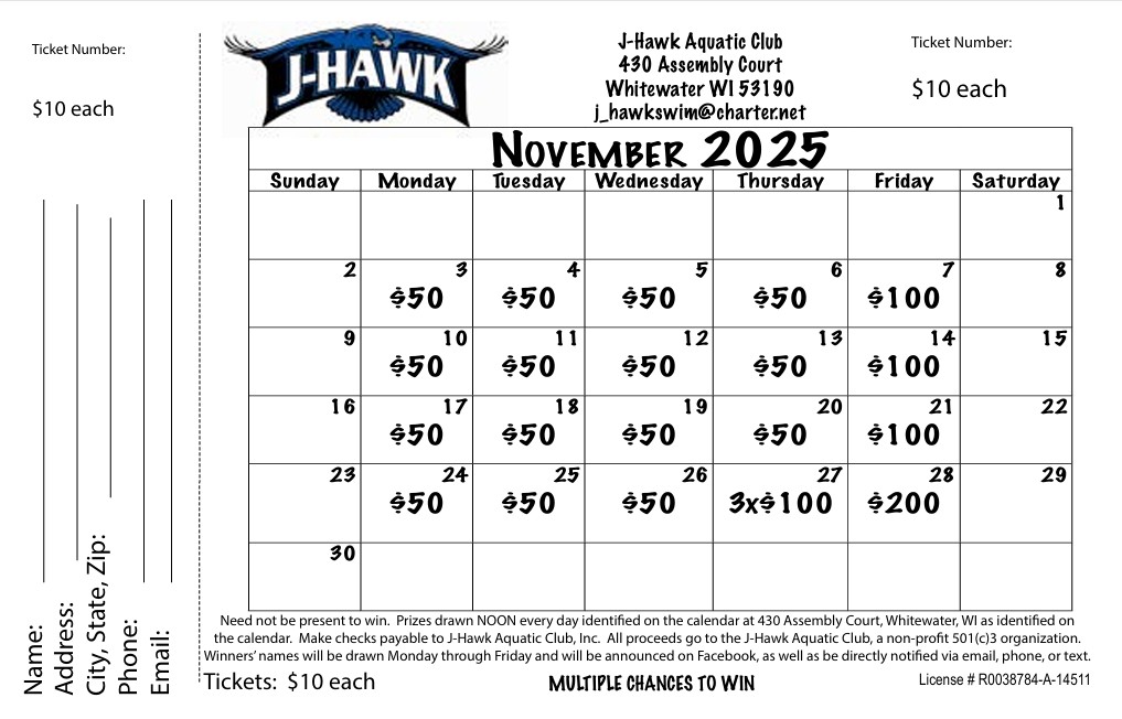 NOVEMBER CALENDAR RAFFLE TICKETS FOR SALE!