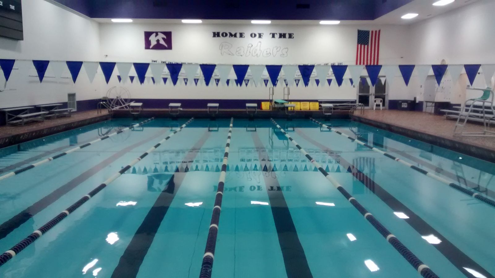 Interior Directions: Upon arriving at the high school, park in the parking lot located to the right of the field house. You will find four sets of double-doors leading toward the school, and the gray pool door will be to the left, aside from the brick siding. The pool door is labeled door number 9, and you will typically see two orange cones outside near this door. Head up the stairs, and you are on deck!