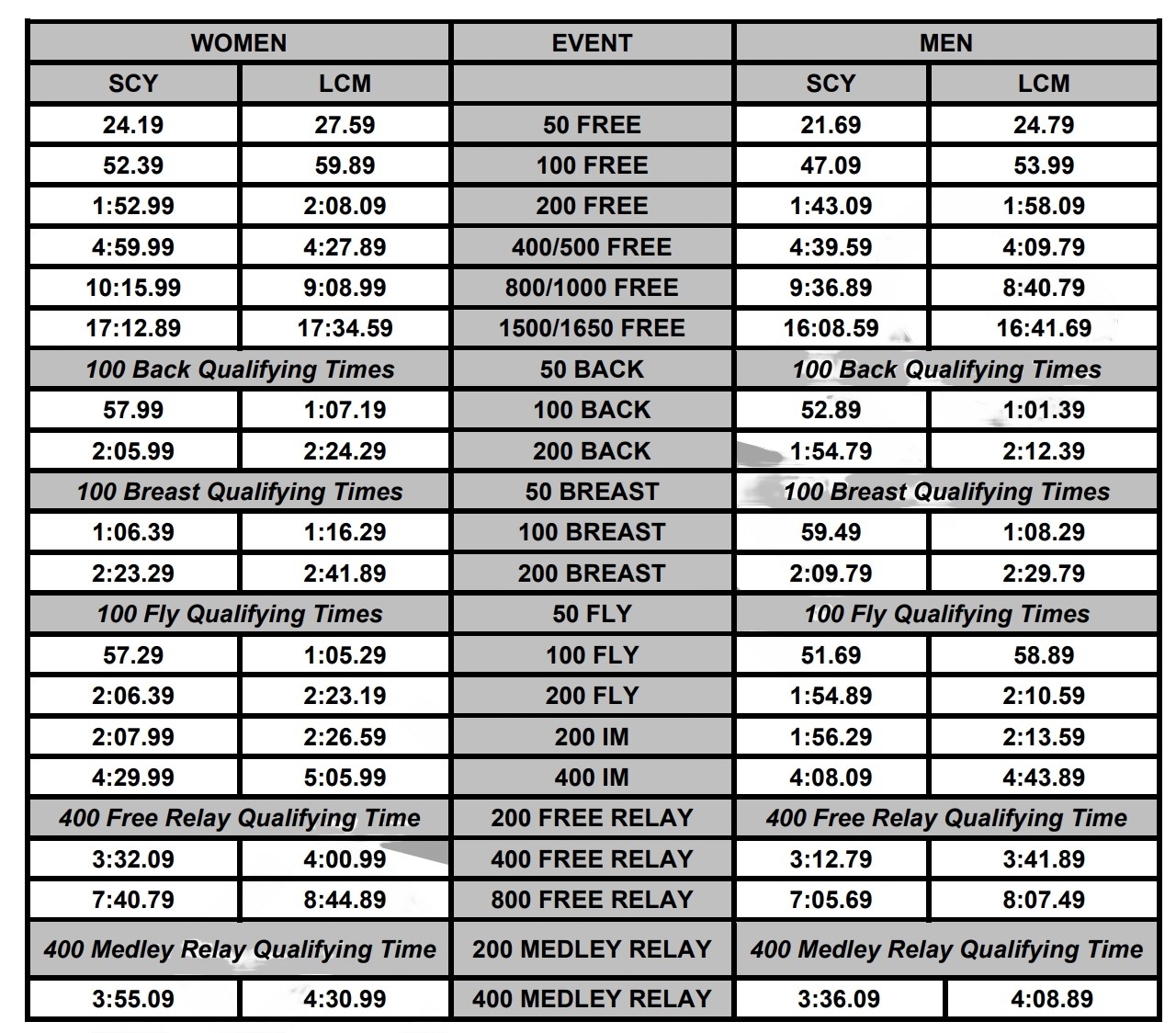 | Time Standards | Time Standards | Time Standards | Time Standards |