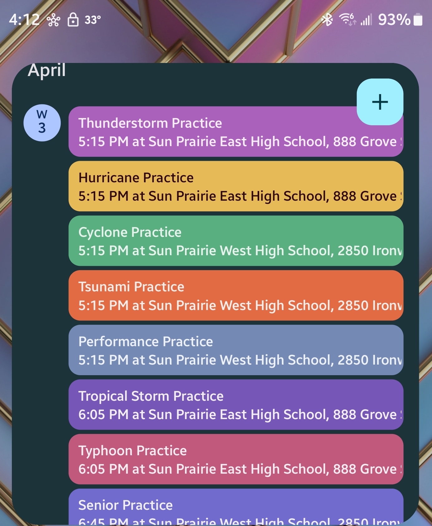 If you haven’t already done so, check out your swimmer’s training group on the website. It’s got all the details you already know, plus a calendar you can subscribe to in order to see just your group’s practice schedule. It’s very convenient! For those of you brilliant folks with Android phones, a calendar widget with the color-coded groups is *chef’s kiss*.