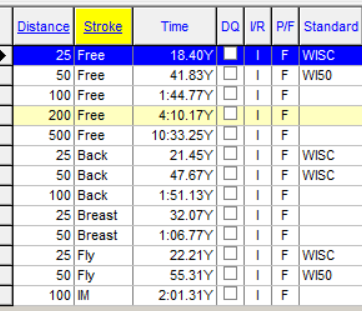 As coaches, we keep multiple databases to track a swimmer’s progress towards all sorts of standards, from their first B cut to their percent within state or sectionals.