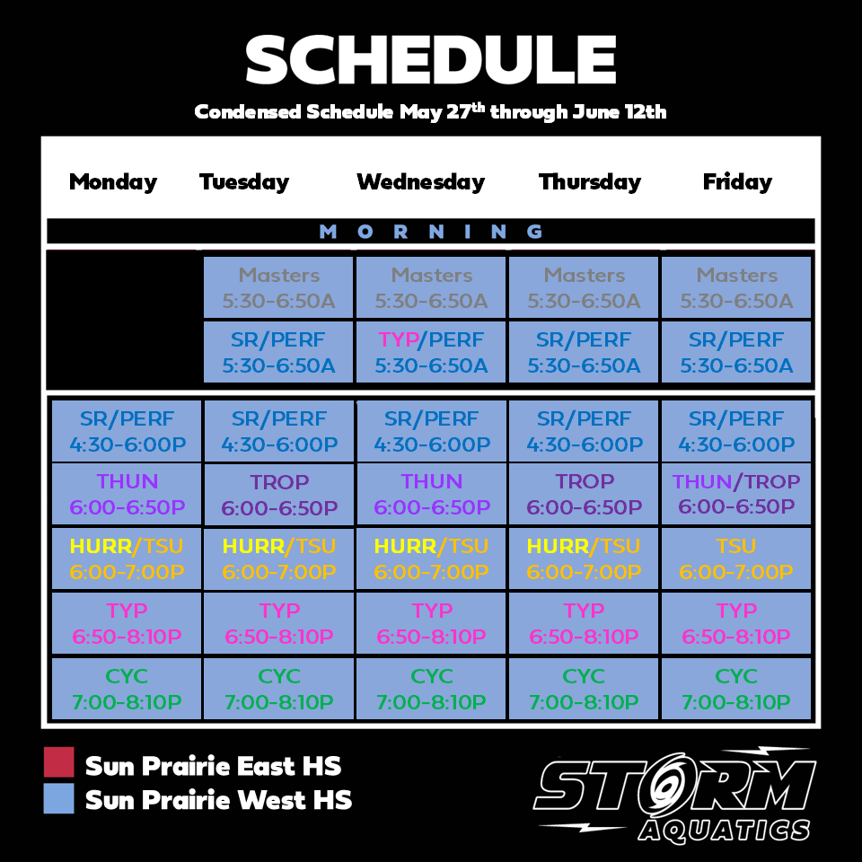 At the start of each summer, we always get a few emails from families that start with summer rec but realize they’re missing their Storm family. If your swimmer is feeling that but you’re struggling to figure out how to make both work, shoot me an email and we’ll work together to figure out a solution that doesn’t drive you crazy from travel or broke, or both.