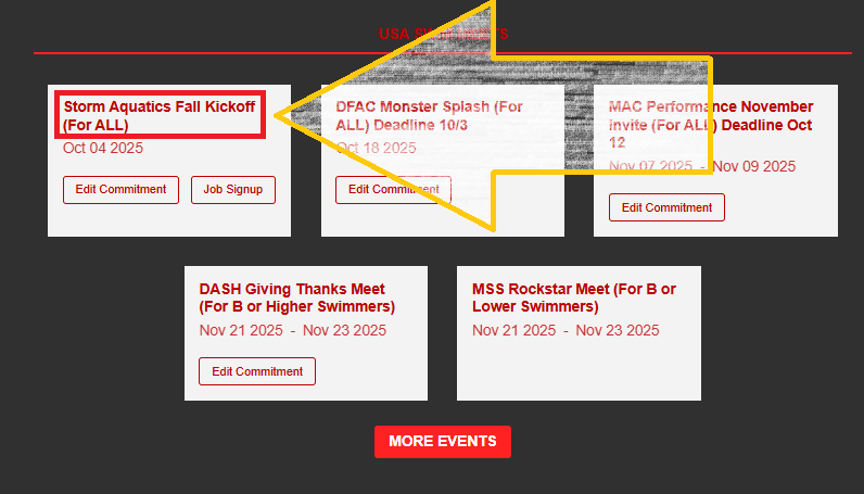 When you're on the homepage, scroll down to the Fall Kickoff event. Or, from the Event page, you can do the same. Click the title of the meet and a lovely little popup emerges.