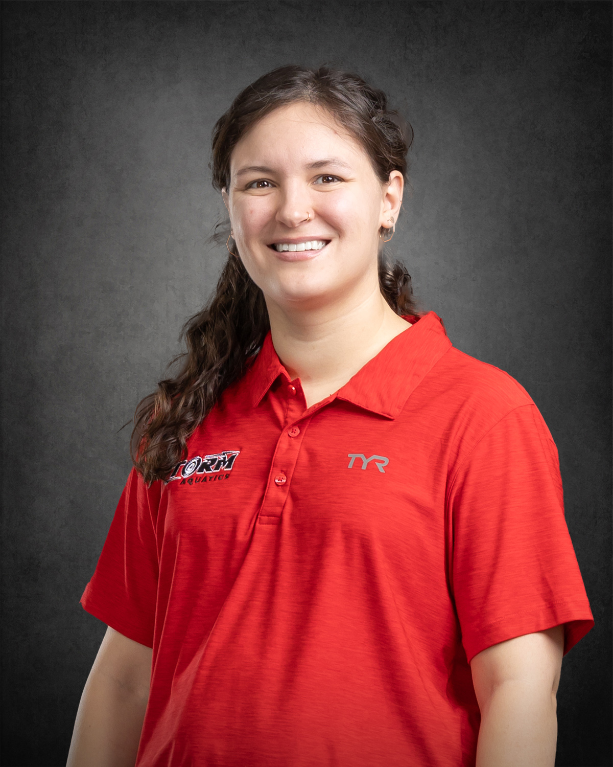 Emily originally coached with Storm from 2018-2020, and returned in 2023. She is from Columbus, Ohio, where she swam for over 10 years and coached for over 8. Emily completed her undergradate degree for Education at Miami University in Oxford, Ohio. In college, she swam competatively before trying out Water Polo for a year. While in college, she went home every summer to coach her home team. After moving to Madison, Emily started coaching storm and teaching. Now, she works part time for Storm, helping with various tasks the team needs, including taking headshots of swimmers, posting on socials, serving as meet director, and helping with Safesport requirements.