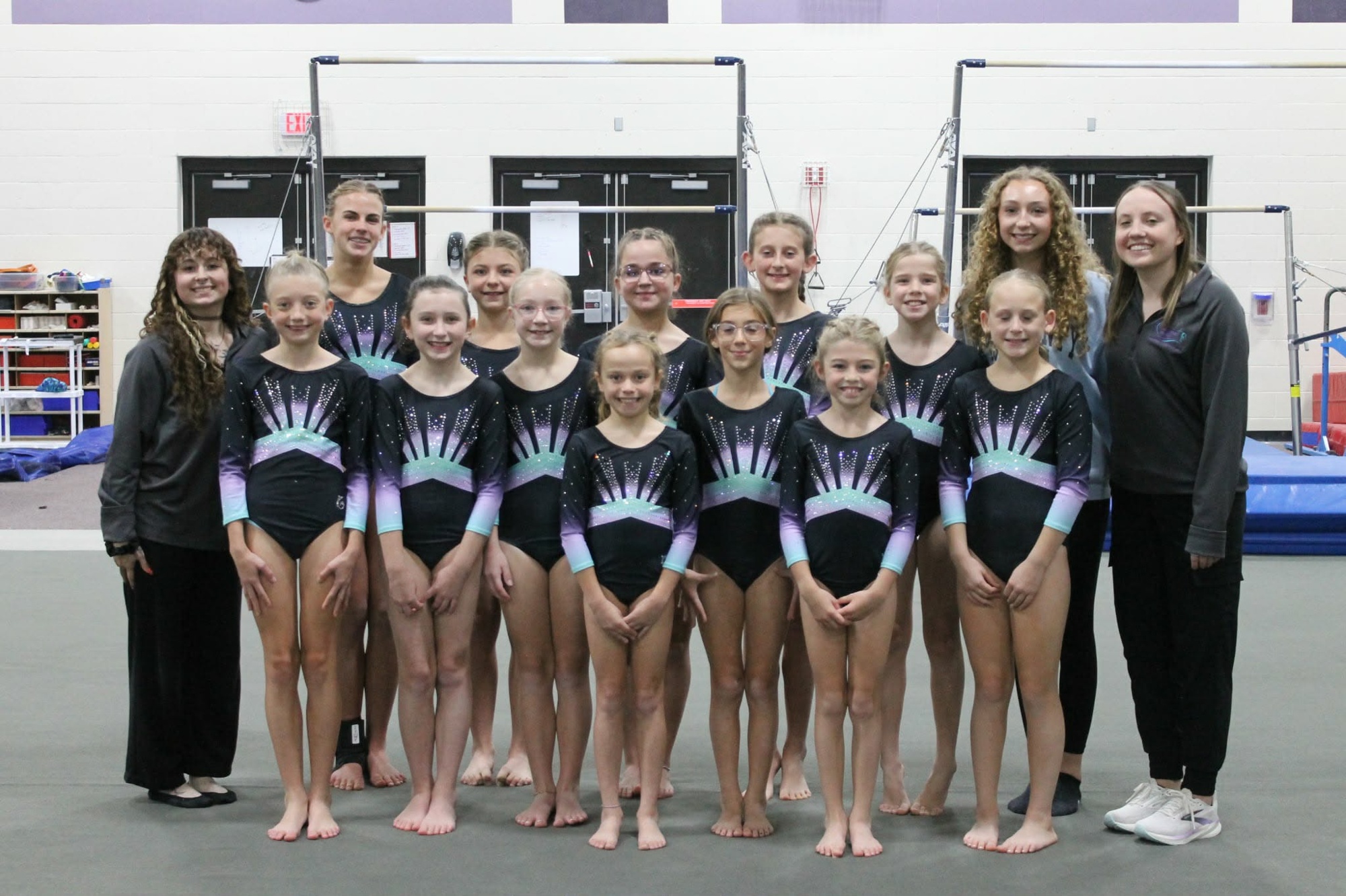 Our gymnastics program aims to develope athletes' physical abilities while instilling life skills such as condifence, perserverence, and teamwork.