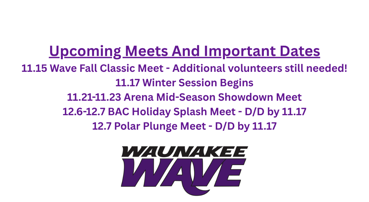 WAVE WEEKLY NEWSLETTER | NOVEMBER 12TH, 2025 SANDY SAYS WAVE FALL CLASSIC HOSTED MEET This Saturday is our HOSTED MEET! We’re so excited to...