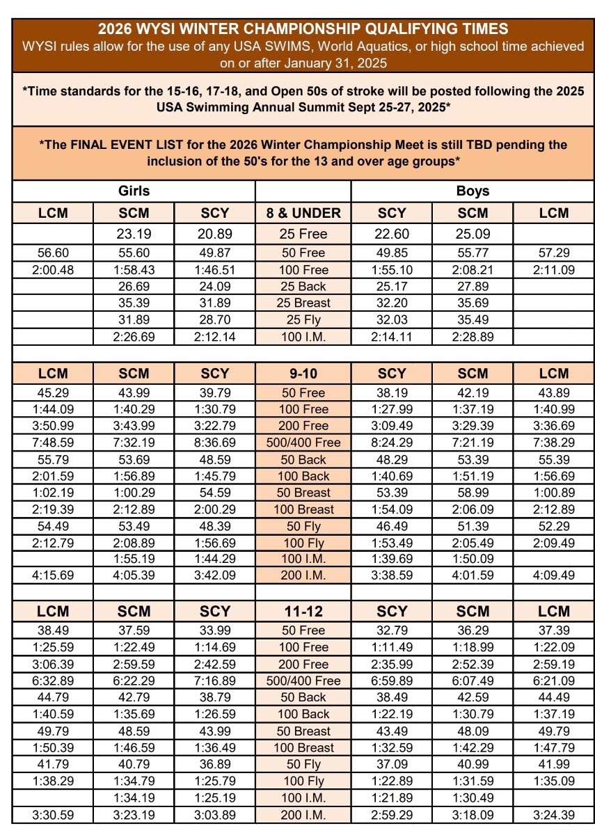 2026 Wyoming Winter Qualifying Times (attached to this email):